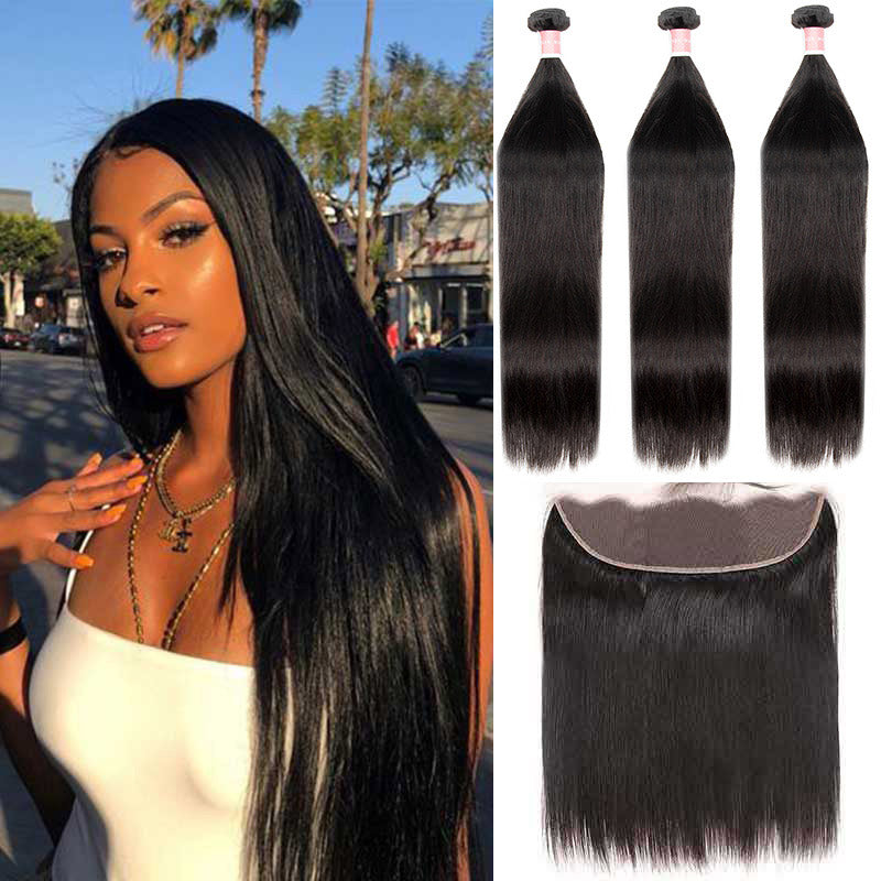 B Top Virgin Straight Hair 3 Bundles with 13x4 HD Lace Frontal